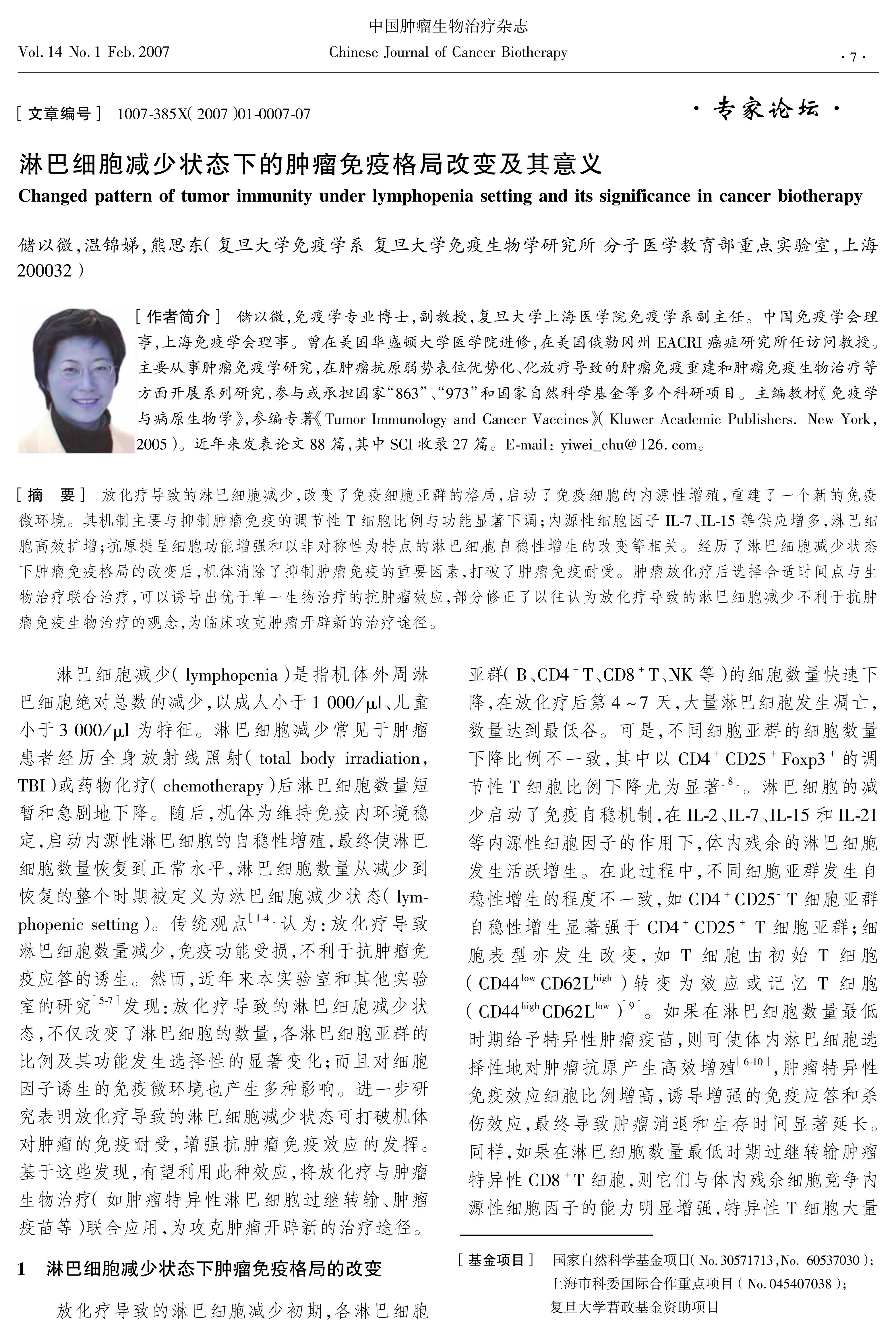 放化疗导致的淋巴细胞减少,改变了免疫细胞亚群的格局,启动了免疫细胞的内源性增殖,重建了一个新的免疫微环境。其机制主要与抑制肿瘤免疫的调节性T细胞比例与功能显著下调;内源性细胞因子IL 7、IL 15等供应增多,淋巴细胞高效扩增;抗原提呈细胞功能增强和以非对称性为特点的淋巴细胞自稳性增生的改变等相关。经历了淋巴细胞减少状态下肿瘤免疫格局的改变后,机体消除了抑制肿瘤免疫的重要因素,打破了肿瘤免疫耐受。肿瘤放化疗后选择合适时间点与生物治疗联合治疗,可以诱导出优于单一生物治疗的抗肿瘤效应,部分修正了以往认为放化疗导致的淋巴细胞减少不利于抗肿瘤免疫生物治疗的观念,为临床攻克肿瘤开辟新的治疗途径。