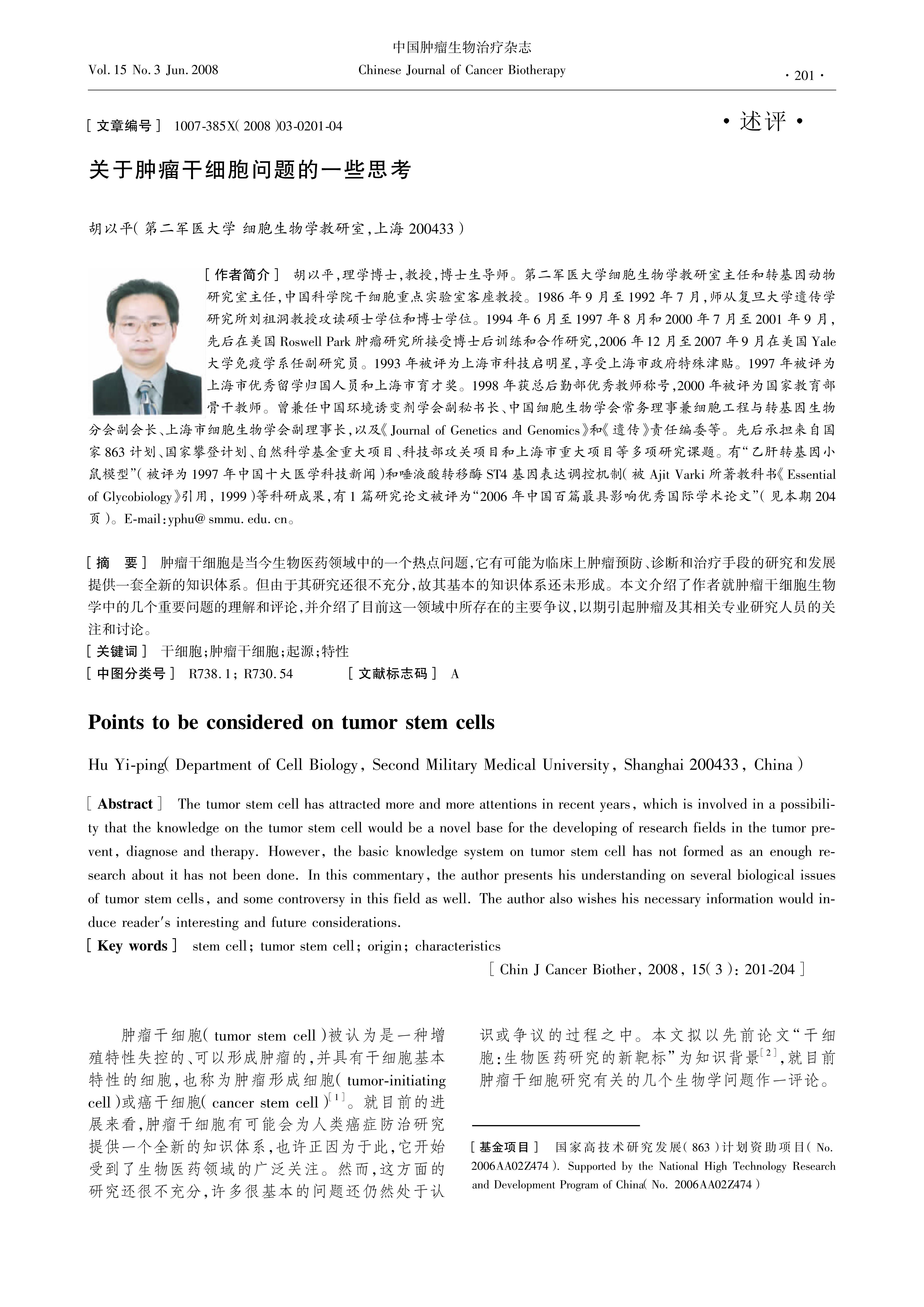 胡以平, et al. 关于肿瘤干细胞问题的一些思考[J].中国肿瘤生物治疗杂志, 2008, 15(3): 201-204. DOI:10.3872/j. issn.1007-385X.2008.3.001.