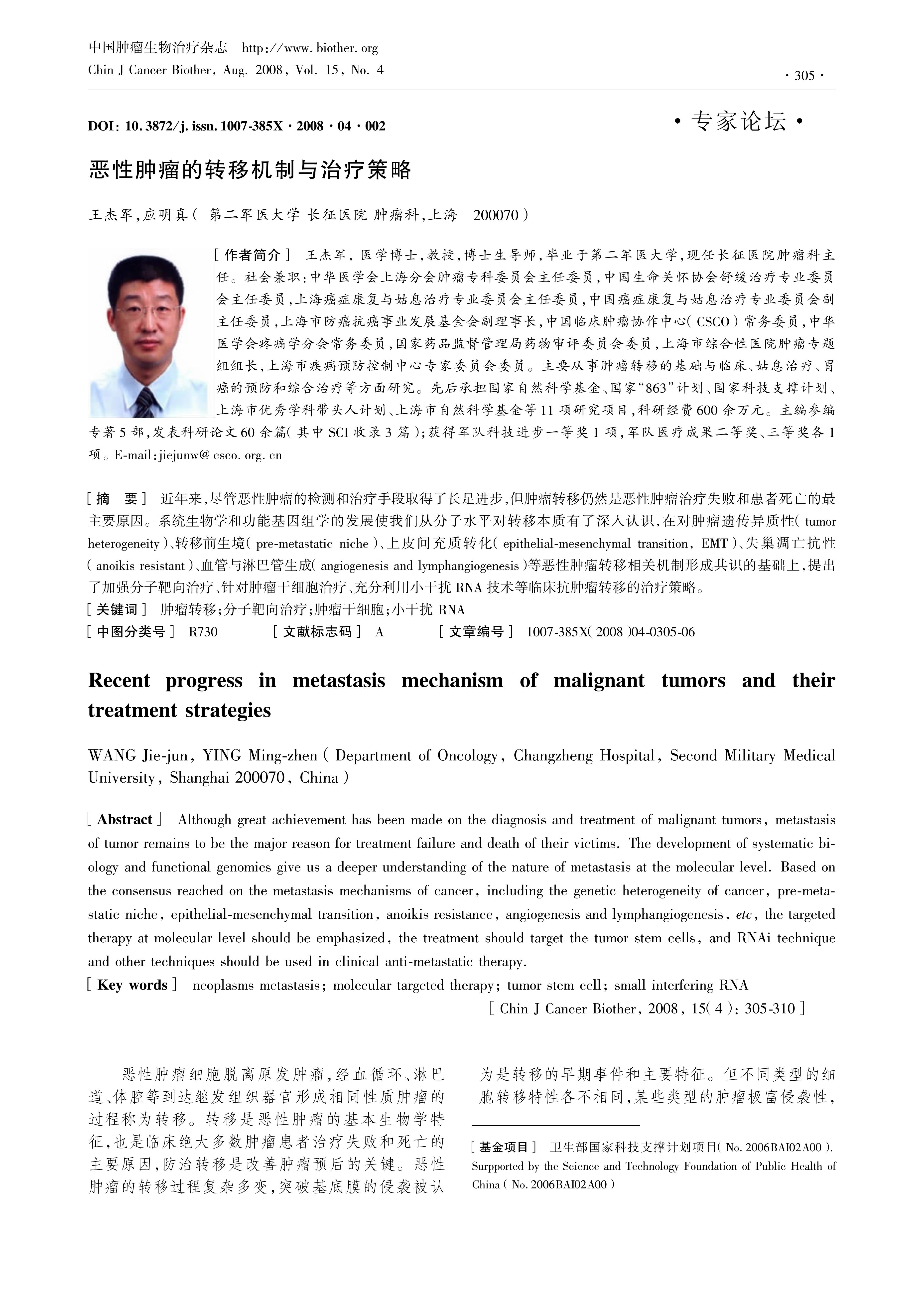 近年来,尽管恶性肿瘤的检测和治疗手段取得了长足进步,但肿瘤转移仍然是恶性肿瘤治疗失败和患者死亡的最主要原因。系统生物学和功能基因组学的发展使我们从分子水平对转移本质有了深入认识,在对肿瘤遗传异质性(tumor heterogeneity)、转移前生境(premetastatic niche)、上皮间充质转化(epithelialmesenchymal transition, EMT)