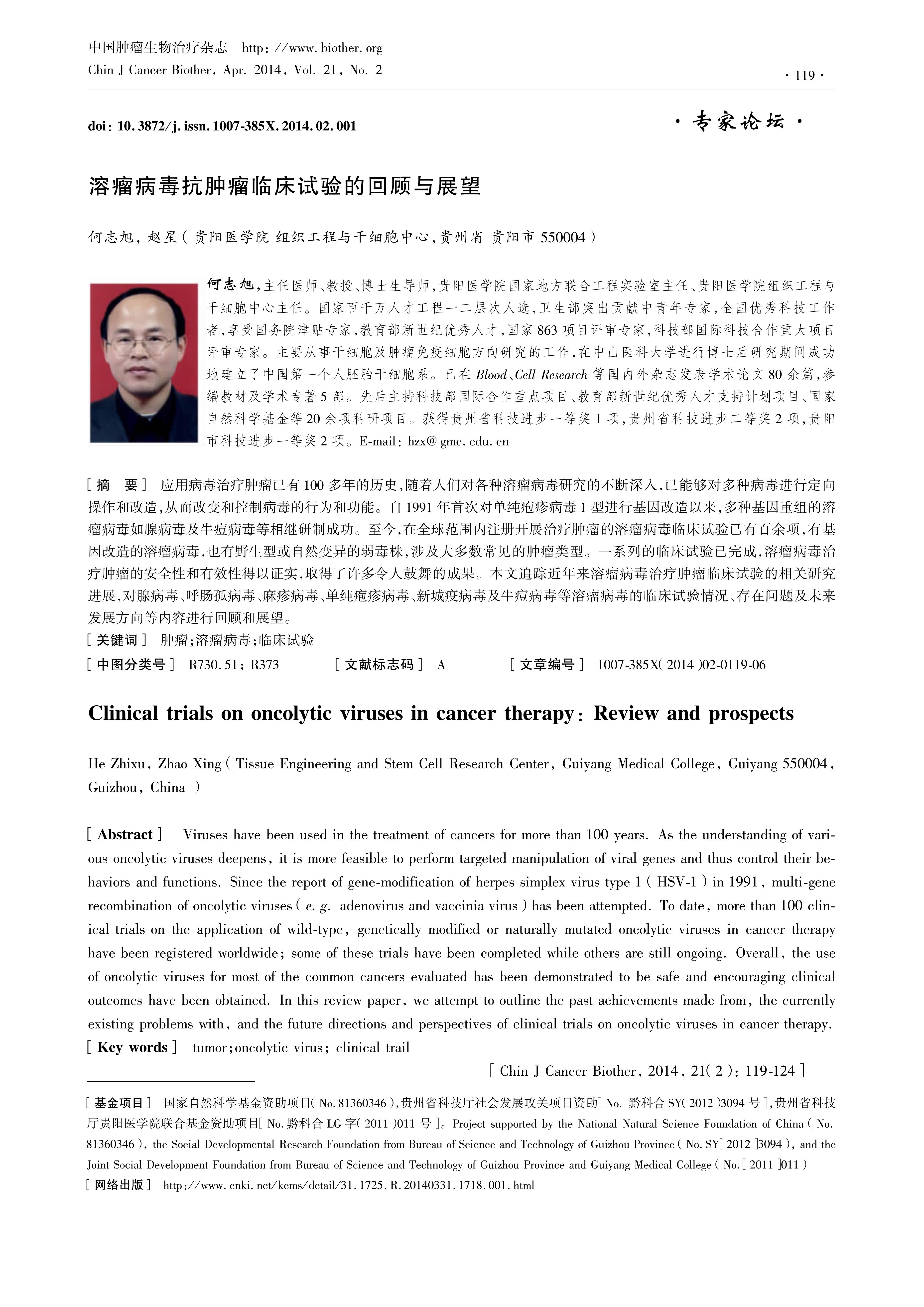 应用病毒治疗肿瘤已有100多年的历史,随着人们对各种溶瘤病毒研究的不断深入,已能够对多种病毒进行定向操作和改造,从而改变和控制病毒的行为和功能。自1991年首次对单纯疱疹病毒1型进行基因改造以来,多种基因重组的溶瘤病毒如腺病毒及牛痘病毒等相继研制成功。至今,在全球范围内注册开展治疗肿瘤的溶瘤病毒临床试验已有百余项,有基因改造的溶瘤病毒,也有野生型或自然变异的弱毒株,涉及大多数常见的肿瘤类型。一系列的临床试验已完成,溶瘤病毒治疗肿瘤的安全性和有效性得以证实,取得了许多令人鼓舞的成果。本文追踪近年来溶瘤病毒治疗肿瘤临床试验的相关研究进展,对腺病毒、呼肠孤病毒、麻疹病毒、单纯疱疹病毒、新城疫病毒及牛痘病毒等溶瘤病毒的临床试验情况、存在问题及未来发展方向等内容进行回顾和展望。